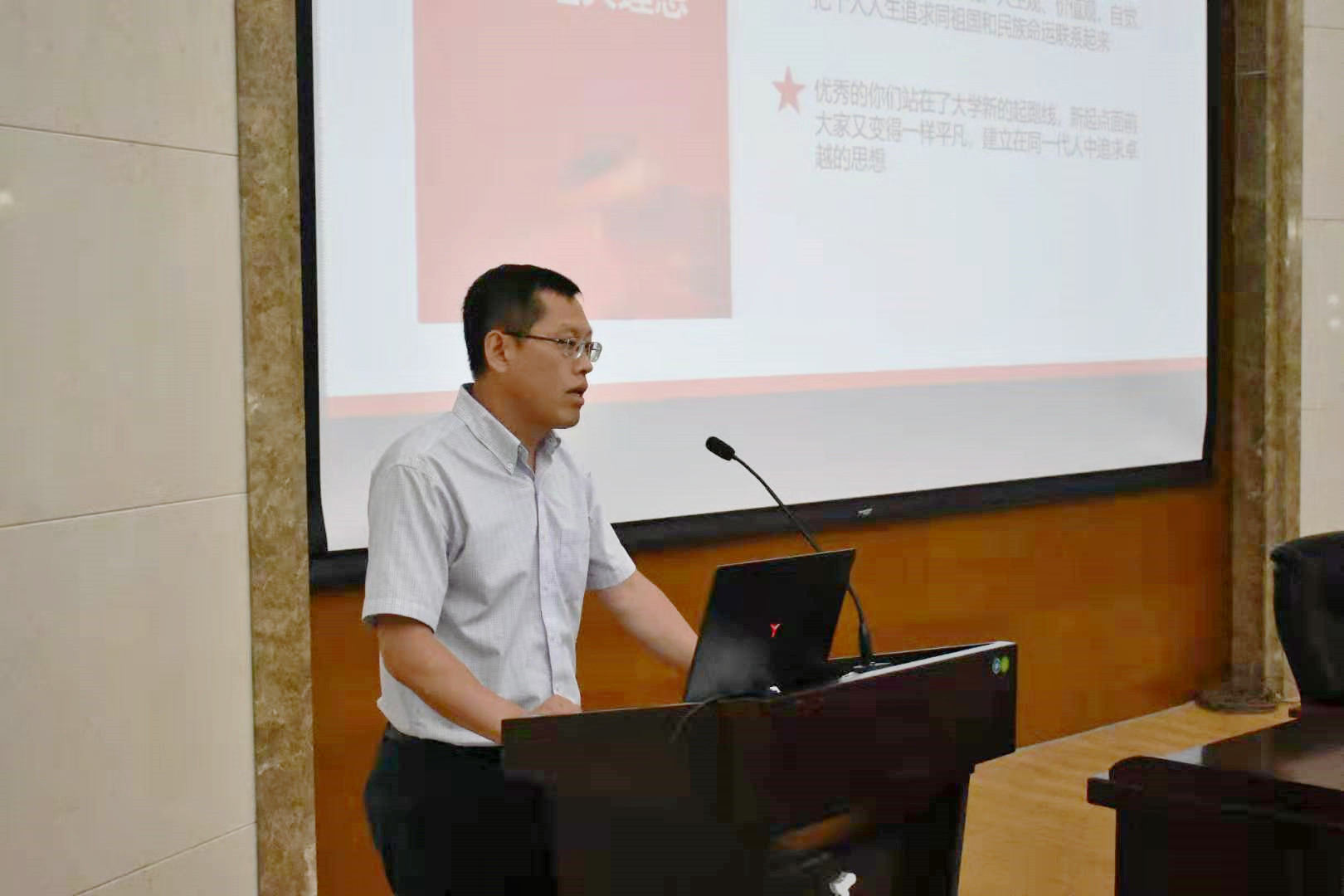 9月4日,在南岭校区仿生楼报告厅,世俱杯中国官网入口党委书记李善兴为全体新生上第一堂党课,勉励新入学学生坚定理想信念,展现青春力量。