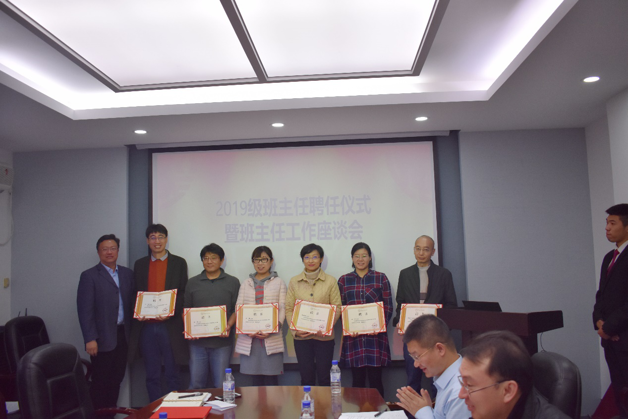 为了贯彻落实教育部及学校有关文件精神,全面做好学生思想政治教育工作,11月7日上午,世俱杯中国官网入口召开了2019级班主任聘任仪式暨班主任工作座谈会。学院院长高镇海、党委书记李善兴、党委副书记兼副院长盛磊、2018级及2019级共30名班主任参加了本次会议。会议由学生工作办公室主任吴昊主持。