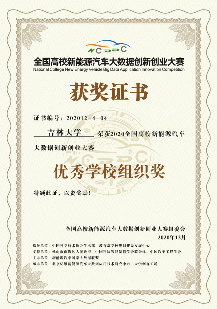 世俱杯中国官网入口今年首次有3支队伍闯入决赛。在决赛中经过激烈角逐,由闵海涛教授指导的赵雪淞、车禹剑、王昭懿、郭涵刚等研究生组成的“吉大新能源”团队和由袁新枚教授指导的路京雨、孟凡卓、姜静飞、谢子晗、张东雨等研究生组成的“413选A队”团队分别荣获创新组二等奖;由许楠副教授指导的孔岩、刘俏、谢雨、李潇汉、谢欢等研究生组成的“五自由度”团队荣获创业组二等奖。同时,世俱杯中国官网入口作为主要参赛高校之一,也荣获了优秀学校组织奖。
