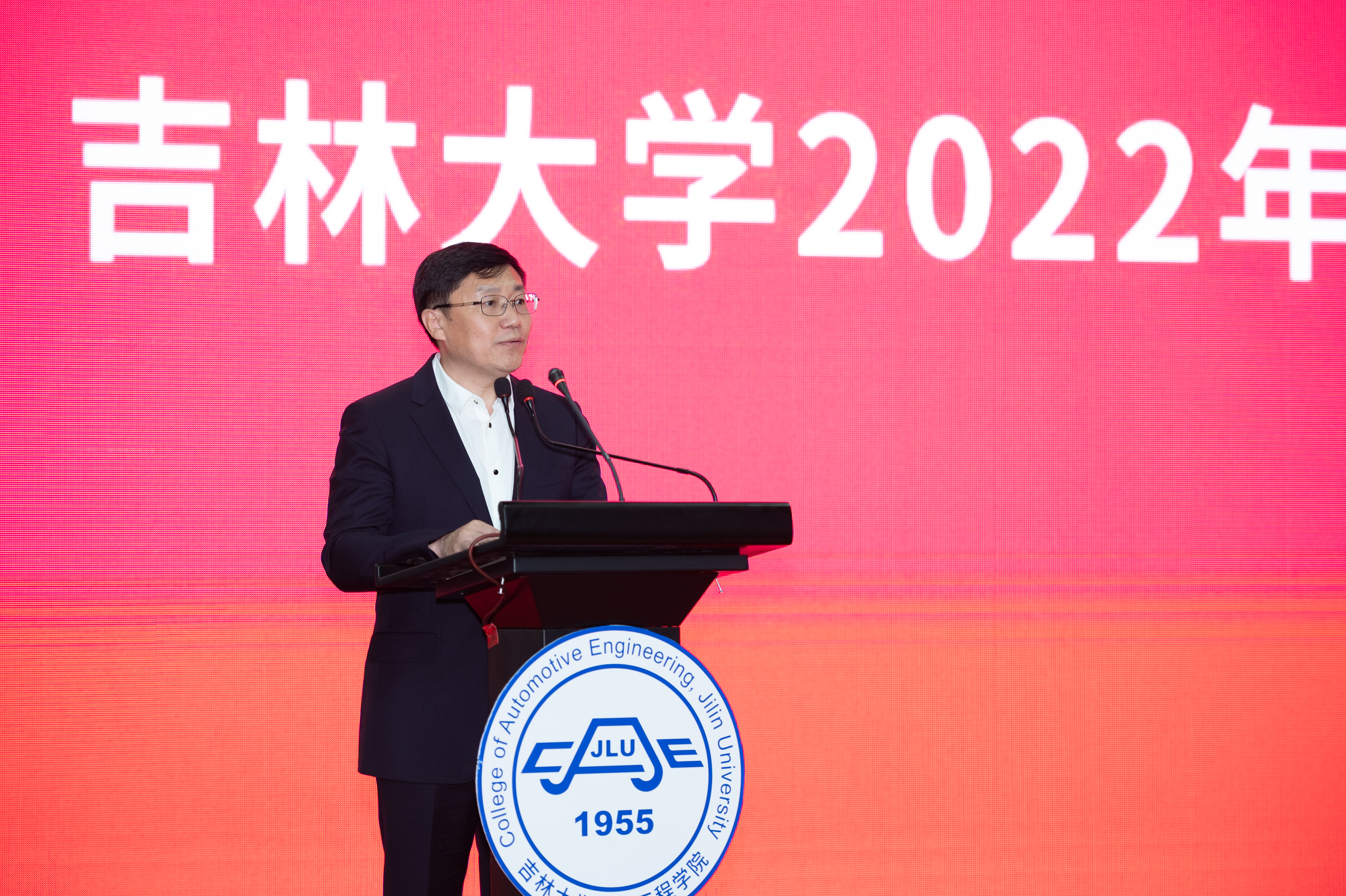 随后,院长高振海教授致辞。在讲话中他提到今年的毕业季由于疫情注定不平凡,云上毕业典礼也是史无前例,但改变的只是方式,不变的是对大家的祝福与期待。他与大家一起回顾了学生们入学以来的成长经历和各方面取得的优异成绩,极大地肯定了学生在思想建设、学业成就、学术创新、车队竞赛荣誉等各方面的亮眼表现。在临行之际,高院长对毕业生提出三点祝愿。一是希望大家坚守初心,怀揣理想,做习近平新时代中国特色社会主义思想坚定的信仰者、忠实的实践者,在中华民族伟大复兴进程中谱写激昂的青春乐章。二是希望大家回首过往,收获成长,勇敢地迎接风雨的洗礼,在困厄的境遇面前不坠青云之志,在历经沧桑之后不失赤子之心。三是希望大家饮水思源,服务社会,能够扛起大旗,承担起这一代应负的社会责任和道德责任,尽己所能去孝敬父母、回报母校、回馈社会。在讲话的最后祝福同学们,鹏程万里,前途远大,在自律自省中完善小我,在拼搏奉献中铸就大我。