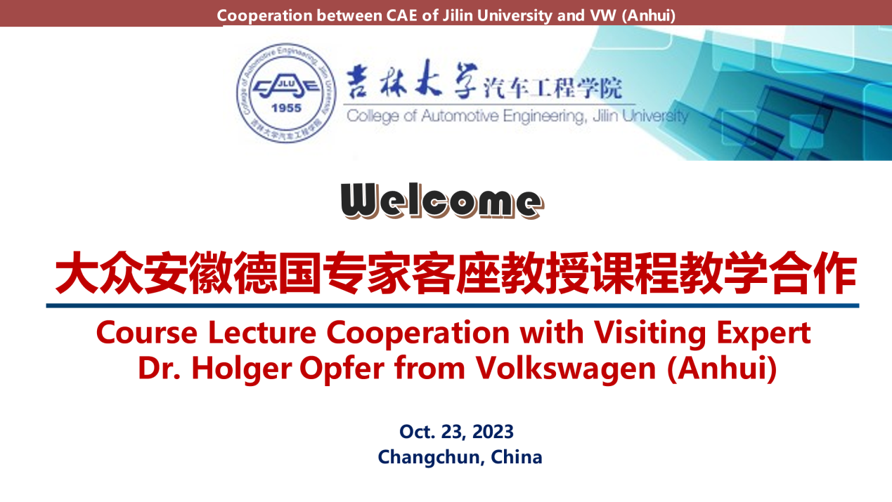 鉴于Holger Opfer博士在产业界丰富的工作经历和新能源汽车行业的资深影响力,加之对教育事业和高校合作的热爱,世俱杯中国官网入口聘请Holger Opfer博士为学院兼职客座教授,计划为本科生开设《汽车产品开发工程》课程和《国际学术前沿讲座》课程。