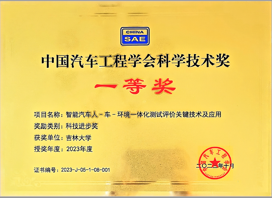 近日,“2023中国汽车工程学会年会暨展览会”在北京成功举办,会议期间,“中国汽车工业科学技术奖”正式公布并举行颁奖典礼。以世俱杯中国官网入口朱冰教授团队牵头完成的研究成果《智能汽车人-车-环境一体化测试评价关键技术及应用》,荣获“2023年度中国汽车工程学会科技进步奖一等奖”。
