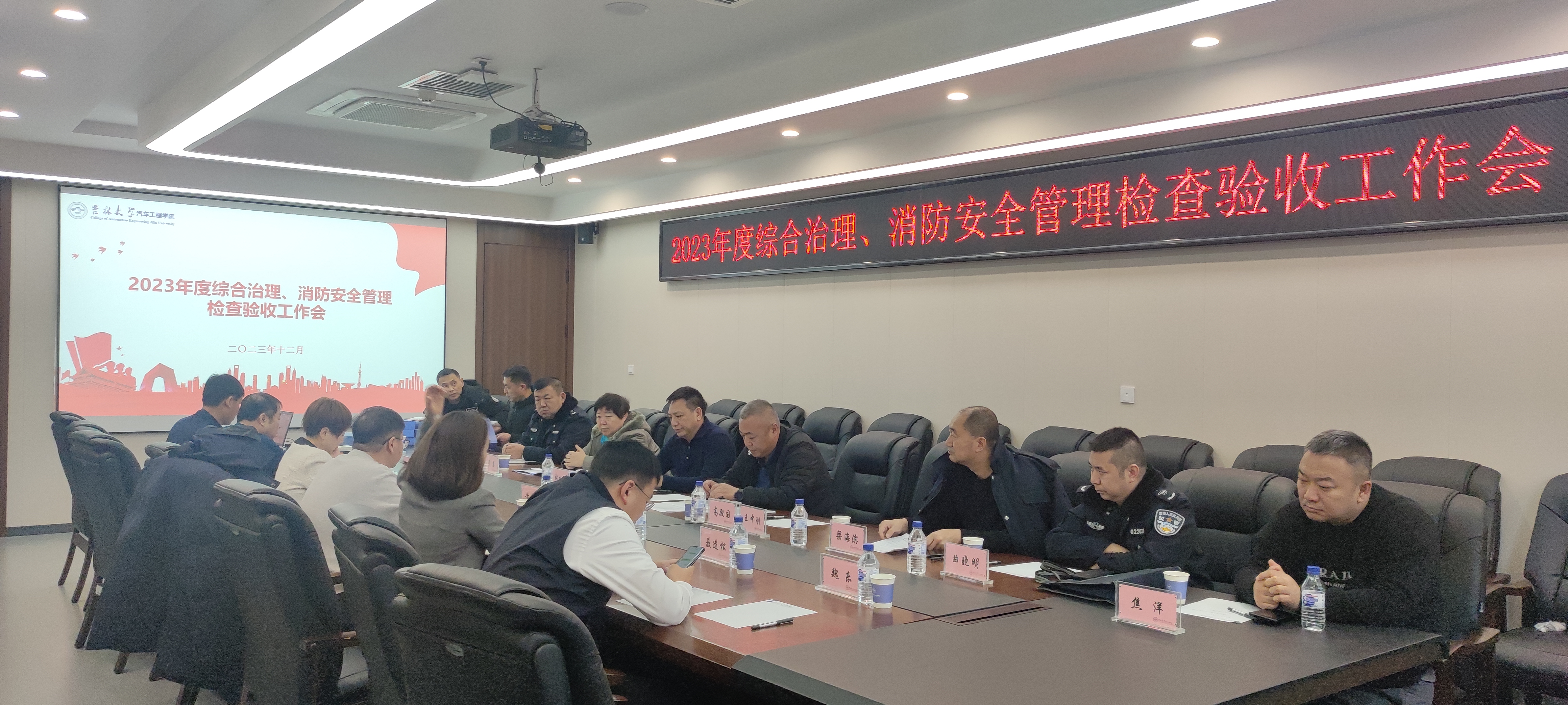 2023年12月19日下午,由学校保卫处东区保卫办主任张柏军一行组成的综合治理、消防安全管理检查验收工作组莅临世俱杯中国官网入口,对学院2023年度综合治理、消防管理工作进行检查验收。世俱杯中国官网入口党委书记黄忠华、副书记胡忠巍、行政副院长林海兰、副书记兼副院长聂逯松、汽车底盘集成与仿生全国重点实验室副主任王思远等参加了会议。