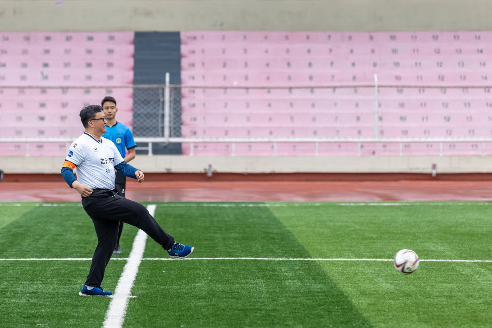 世俱杯中国官网入口院长高振海为本场比赛开球。随着主裁判一声哨响,比赛在激烈的氛围中拉开帷幕。双方队员在球场上尽情展现速度与激情,每一次传球都让校友师生情愈发坚固、每一次射门都迸发着团队的力量,充分展现“友谊第一,比赛第二”的体育精神。最终,比分定格在1:0,师生联队获得胜利。