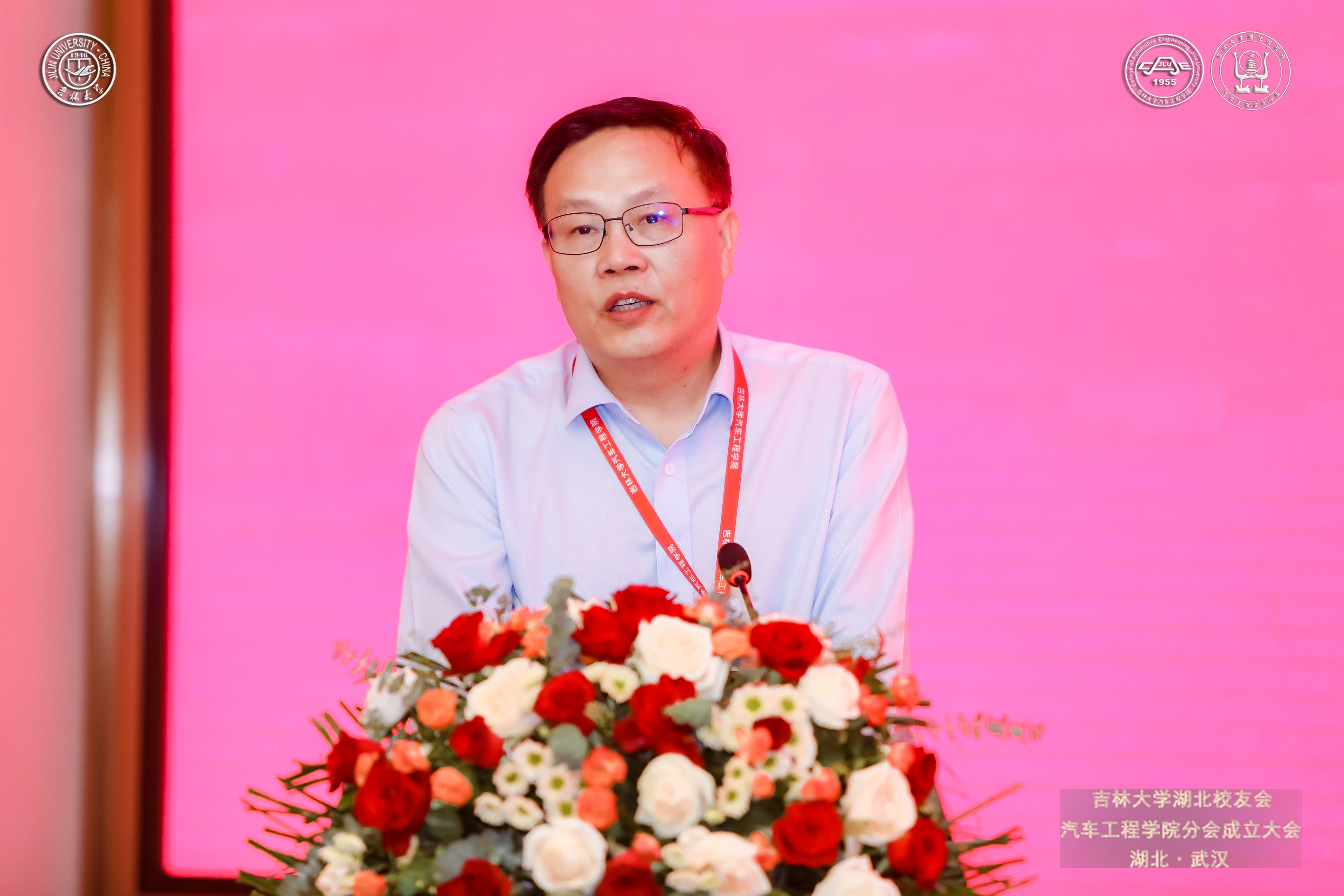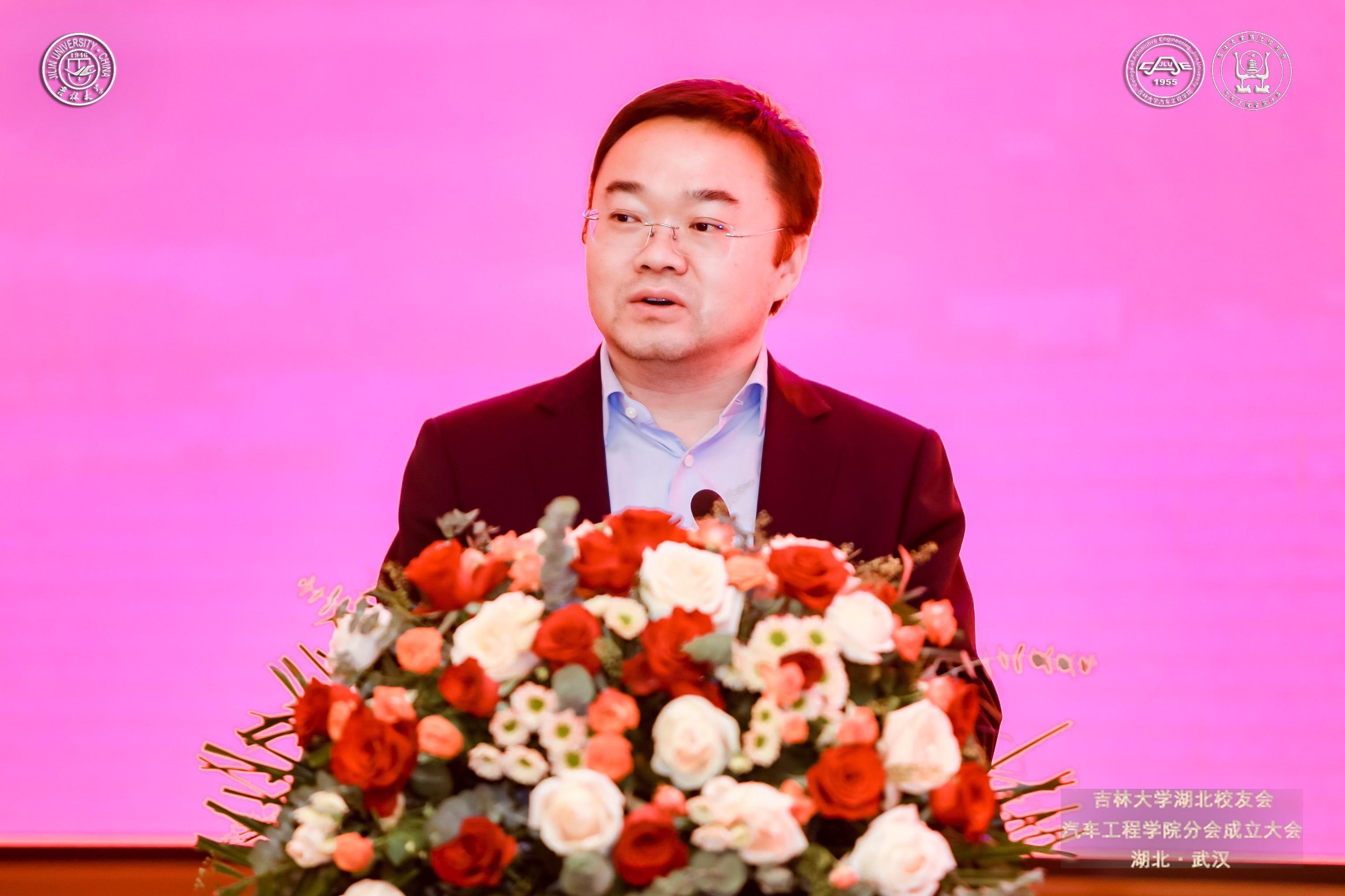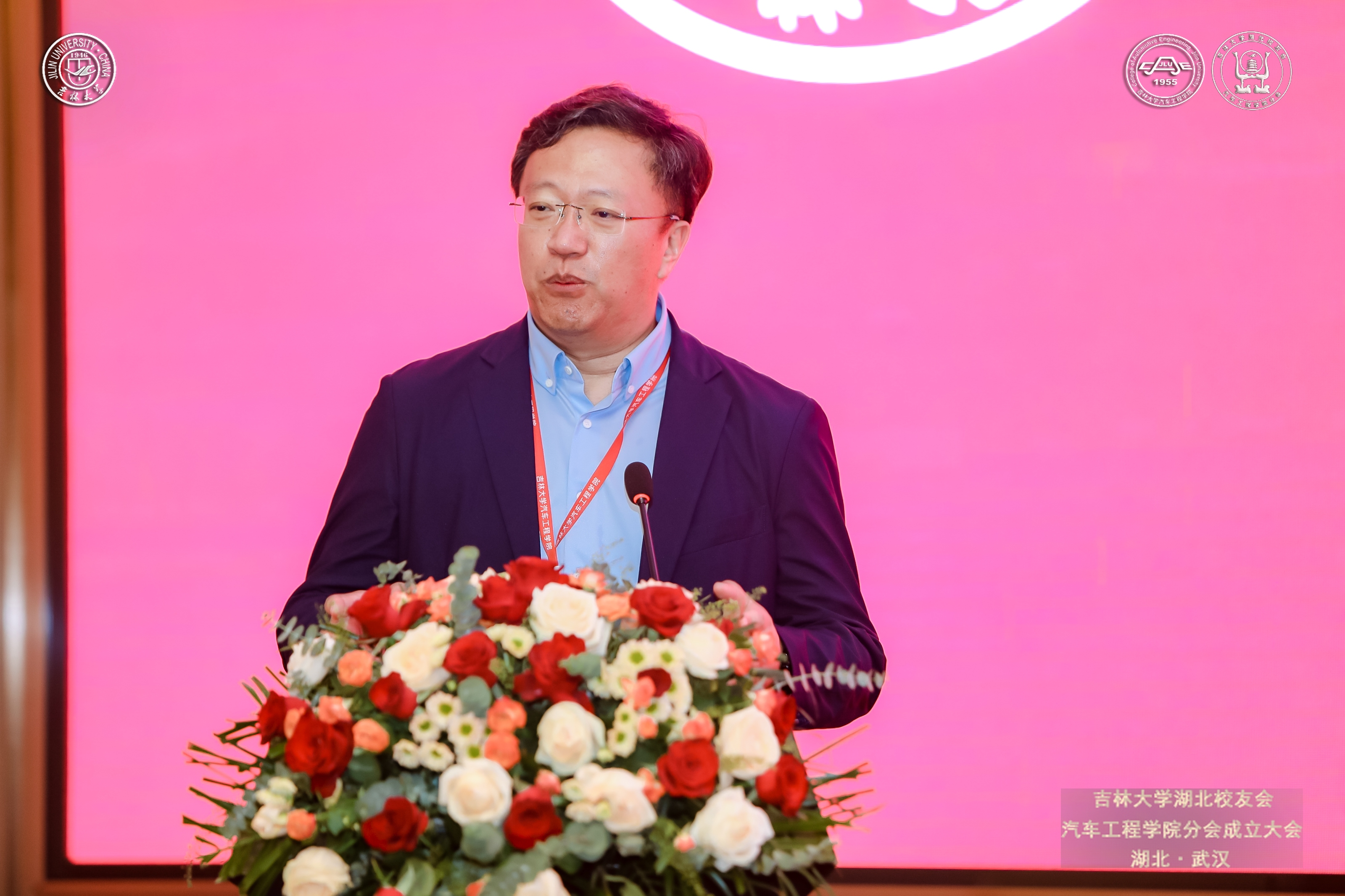 世俱杯中国官网入口校友和基金工作办公室主任、校友总会秘书长康永刚致辞。他希望世俱杯中国官网入口湖北校友会世俱杯中国官网入口分会的成立,能够搭建起世俱杯中国官网入口校友与校友之间、校友与母校之间、母校与校友所在地之间联络感情、交流合作、共谋发展的坚固平台;希望广大校友坚持以服务国家战略为导向,始终牢记“国之大者”,想国家之所想、急国家之所急、应国家之所需;希望校友们发挥湖北省汽车产业的底蕴优势,加深与地区领导及企业的交流和沟通,助力汽车产业发展及建设,在湖北这片热土上拼搏奋斗、追逐梦想、成就事业,携手打造多点支撑、多业并举、多元发展的新格局,为祖国建设和地方经济发展贡献吉大汽车人的智慧与力量。