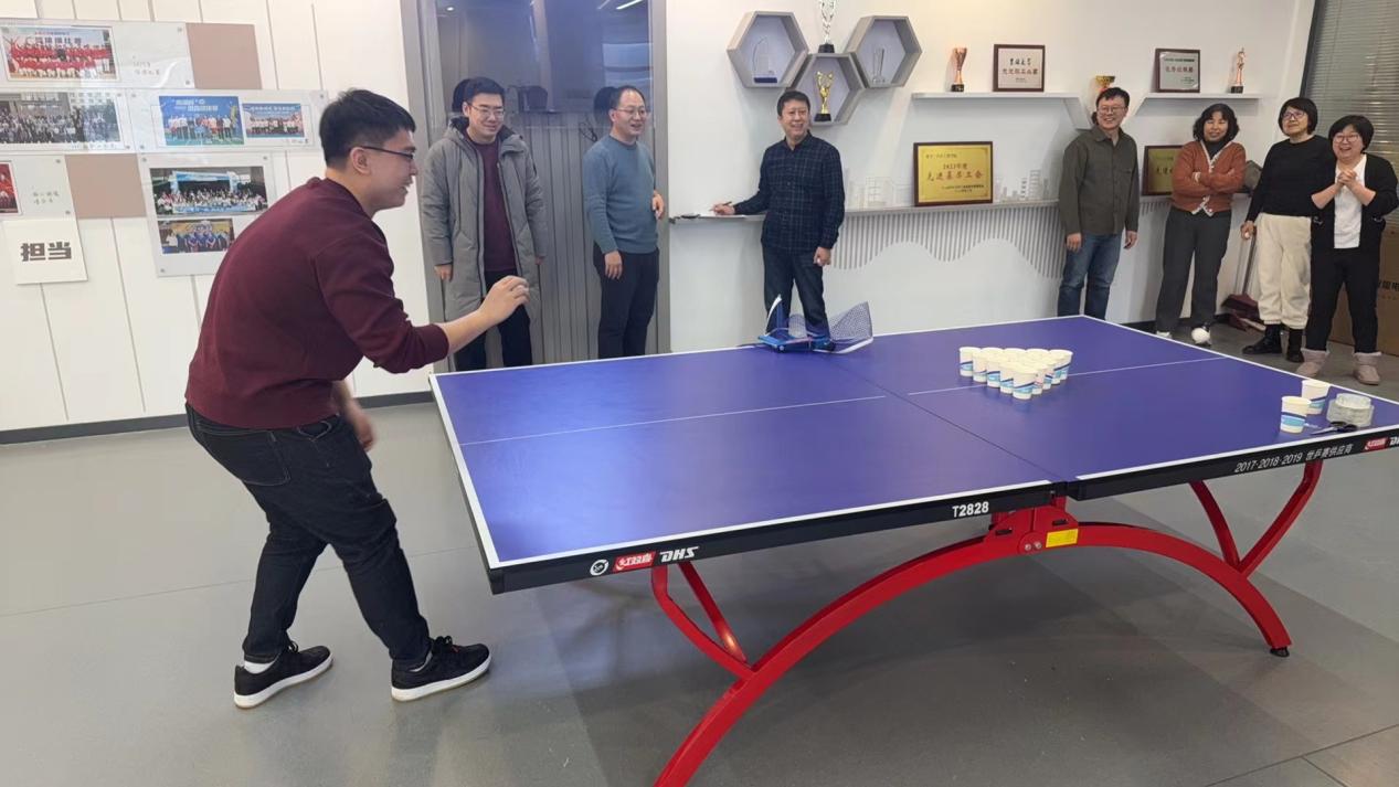 此次活动以二十届三中全会精神学习知识趣味抢答与趣味活动相结合的形式开展。趣味活动环节,老师们各显神通,通过控制乒乓球的力量和角度将乒乓球弹入理想的目标纸杯中,获得相应积分。答题环节,党员同志进行扫码抢答,并根据答题的数量、准确度、答题速度进行评选积分,最后根据两个环节的积分总和,评选出了一二三等奖。
