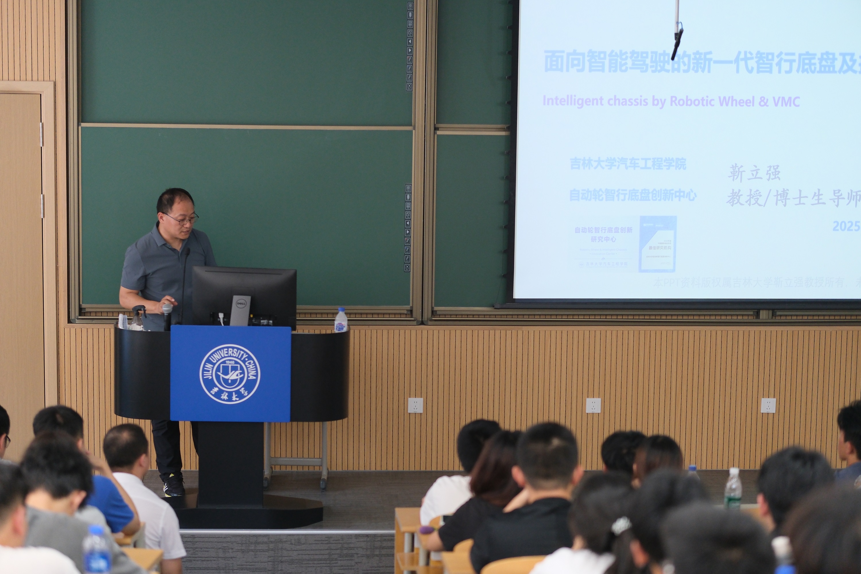 各系主任依次介绍了本学科的基本情况和特色研究方向。汽车工程系聚焦汽车先进电子技术、智能网联汽车;车身工程系围绕汽车轻量化设计、智能座舱、未来汽车造型;能源与动力工程系则深入讲解多元动力系统高效清洁燃烧技术、未来车用动力、飞行汽车动力、热管理等新兴技术,让同学们对各学科有了更清晰的认识。
