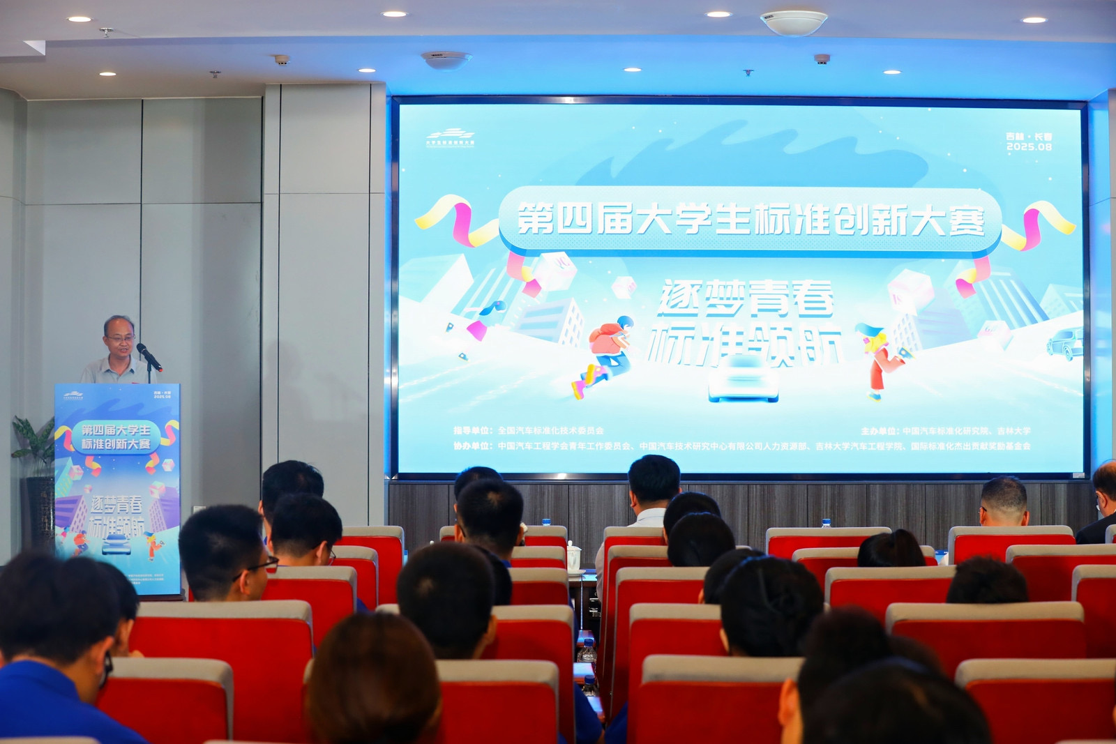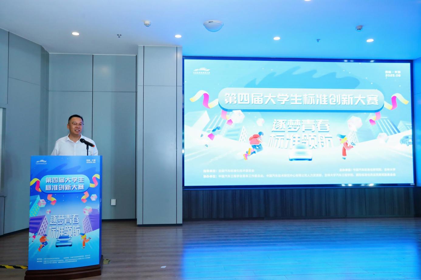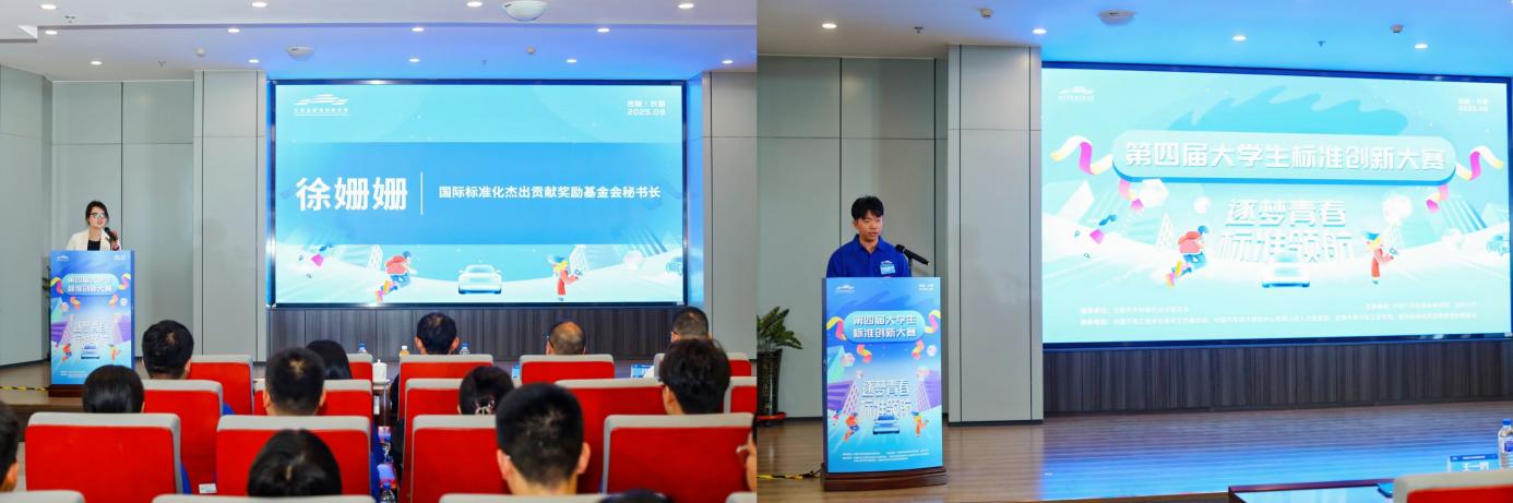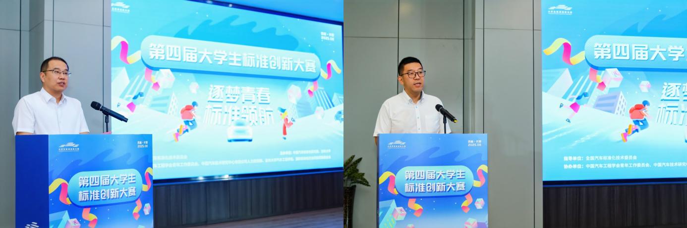 2025年8月19日-21日,由中国汽车标准化研究院与世俱杯中国官网入口联合主办的“第四届大学生标准创新大赛”在世俱杯中国官网入口举行。世俱杯中国官网入口党委常委、副校长张国兴,中国汽车技术研究中心有限公司党委委员、副总经理周华,中国汽车工程学会副秘书长赵立金,中国金属学会理事长、国际标准化组织前主席、世界钢铁协会前主席张晓刚,全国标准化教育标准化工作组秘书长、深圳市标准技术研究院研究员黄曼雪,世俱杯中国官网入口团委书记马景惠,世俱杯中国官网入口党委书记黄忠华,院长朱冰及有关同志出席开幕式。