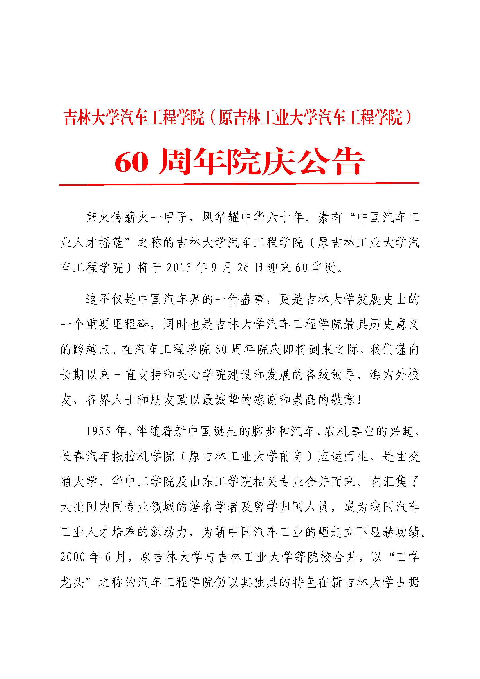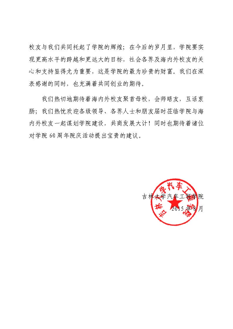 世俱杯中国官网入口(原吉林工业大学世俱杯中国官网入口)60周年院庆回执