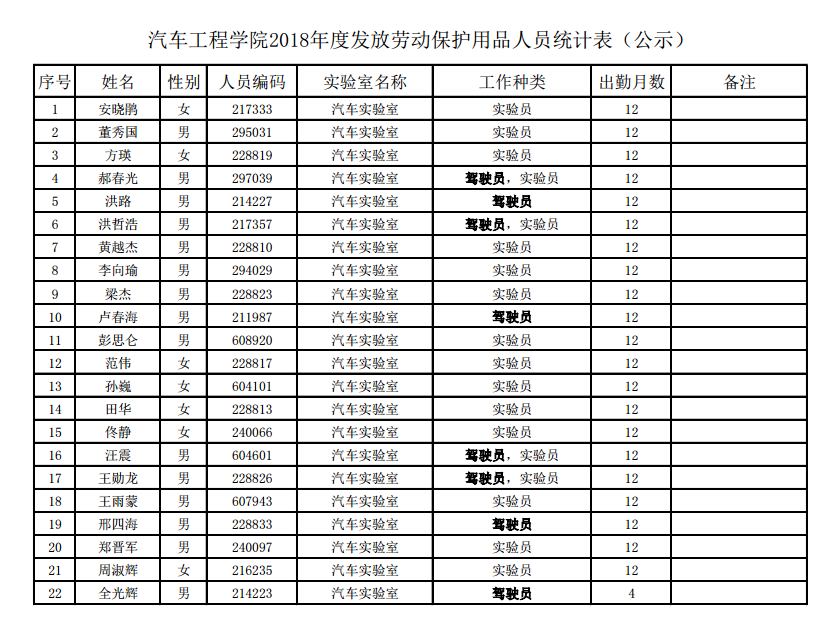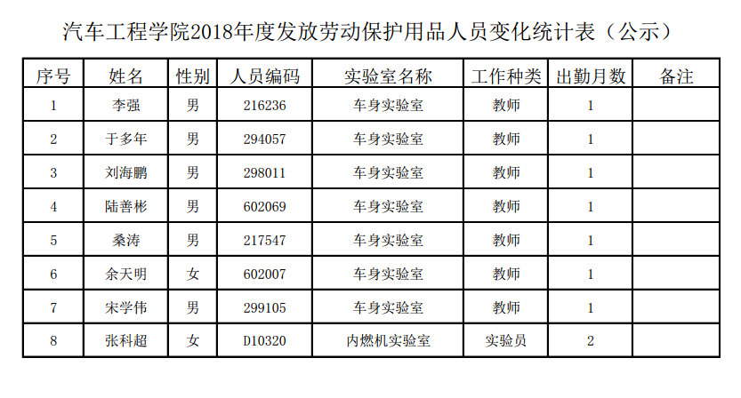 根据《关于开展2018年度学校劳动保护用品和营养保健津贴统计发放工作的通知》(实管函〔2019〕15号)有关精神,现对我院2018年度发放劳动保护用品以及营养保健津贴人员名单进行公示,公示日期:2019年5月30日至2019年6月1日。公示期内如有异议,请联系学院科研与实验室管理办公室,联系人:陈雪梅,联系电话:85095833,电子邮箱:xuemei@jlu.edu.cn。