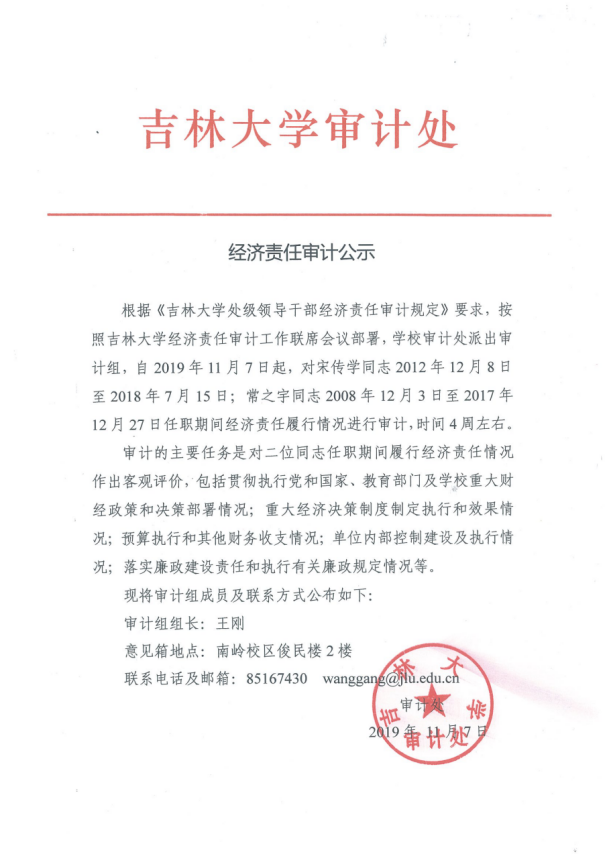 世俱杯中国官网入口审计处关于经济责任审计公示