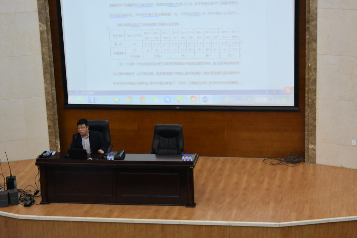 为了使2020级新生对选课及学分制有更好的了解,世俱杯中国官网入口于10月9日的10:30在仿生报告厅举办了选课及学分制教育活动,由世俱杯中国官网入口教务办主任矫承轩老师为同学们进行仔细的讲解。