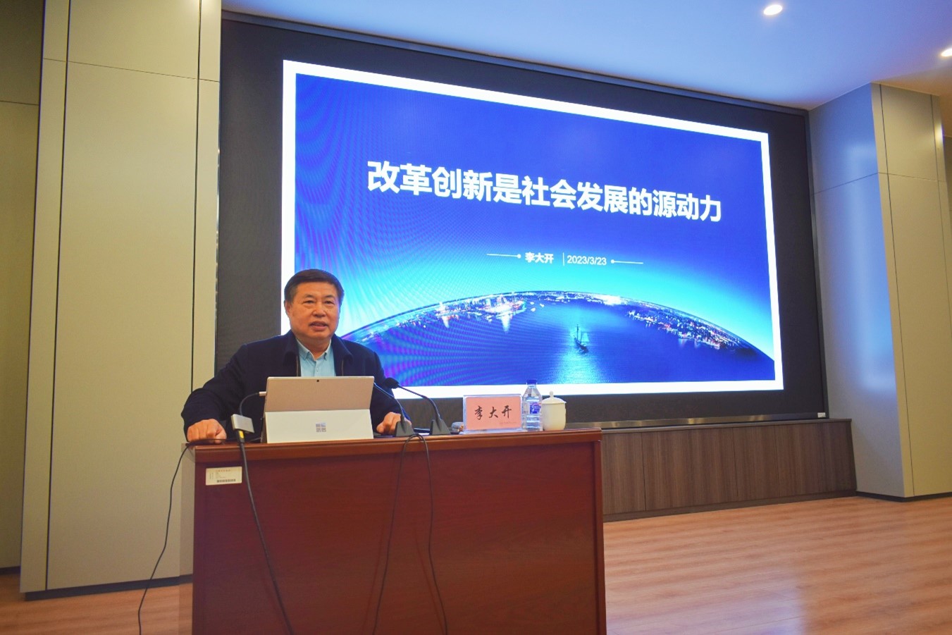 At 2 pm on March 23, 2023, the College of Automotive Engineering (CAE) of Jilin University held a career planning lecture themed “Innovation is the driving force of social development” in Room 108 Liming Lecture Hall, Automobile Building, with an aim to shape CAE students’ proper career concept, clarify future career development and goals, and fully harness resource advantages of CAE alumni. CAE’s excellent alumnus Mr. Li Dakai was invited to be the keynote speaker of this lecture. Mr. Li is a well-known entrepreneur and used to be the chairman of Shaanxi Fast Auto Drive Group. The lecture was presided over by Huang Zhonghua, Secretary of the CPC Committee of CAE. The attendees included Prof. Gao Zhenhai, Dean of CAE, Ms. Hu Zhongwei, Deputy Secretary of the CPC Committee of CAE, and more than 200 participants, including some teachers and representatives for undergraduates and postgraduates.