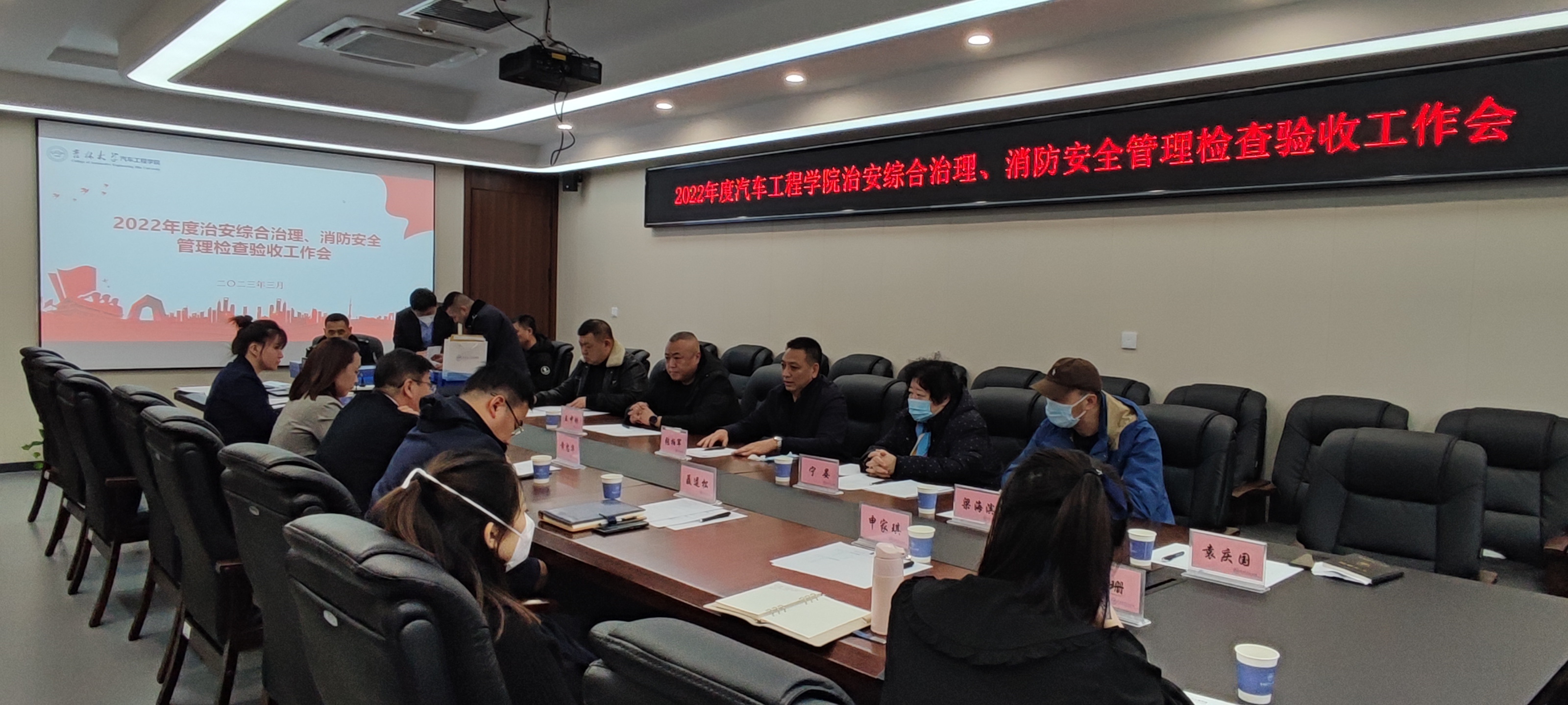 2023年3月2日下午,由学校保卫处东区保卫办主任张柏军一行组成的治安综合治理、消防安全管理检查验收工作组莅临世俱杯中国官网入口,对学院2022年度综合治理、消防管理工作进行检查验收。世俱杯中国官网入口党委书记黄忠华、行政副院长林海兰、副书记兼副院长聂逯松等参加了会议。