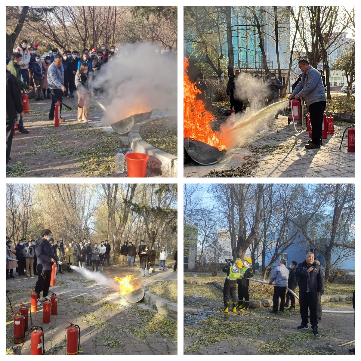 随后,王老师还为师生讲解并演示了干粉灭火器、二氧化碳灭火器及消防水枪的使用方法及注意事项,师生们认真学习,部分师生进行了灭火实操。
