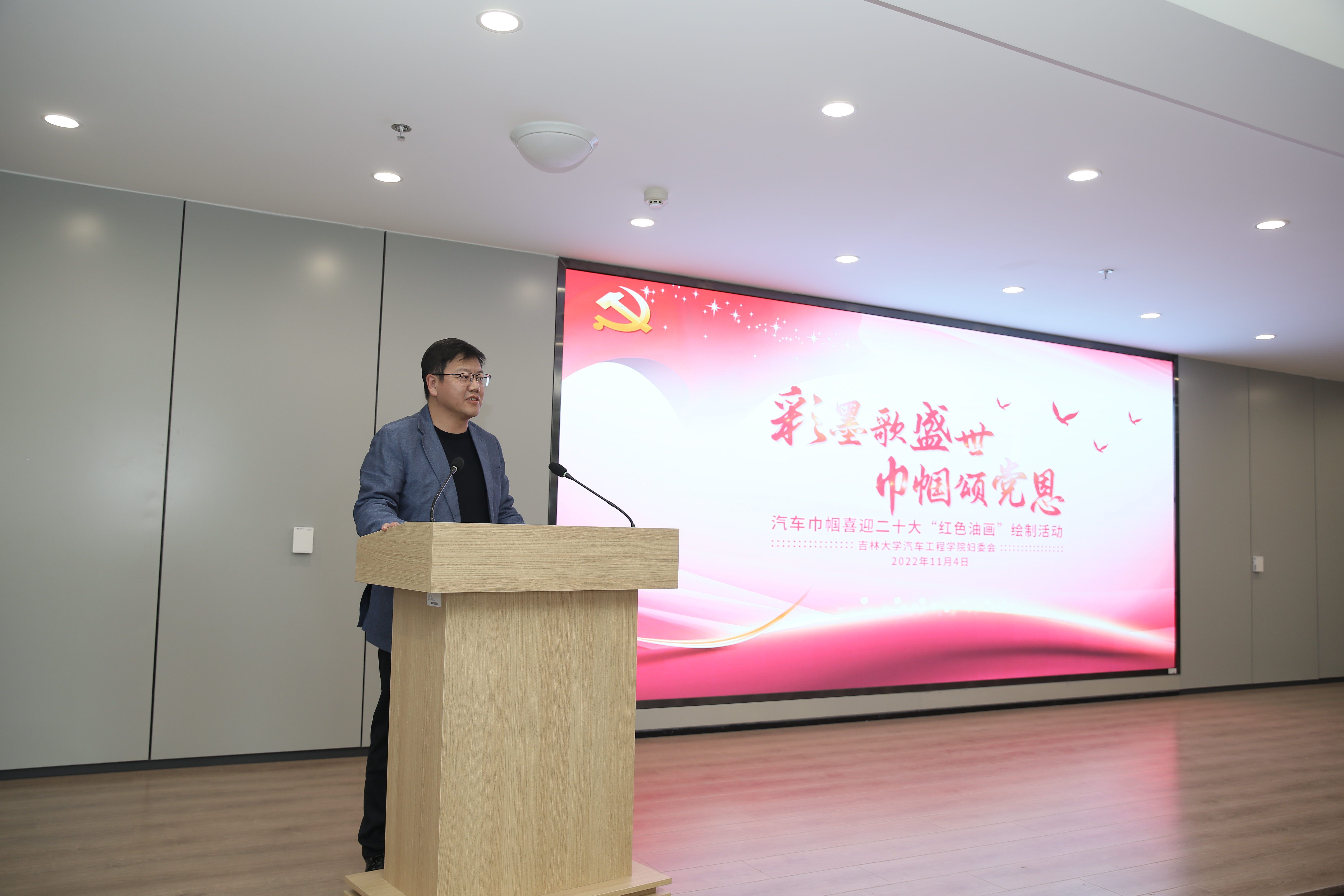 为庆祝党的二十大胜利召开,世俱杯中国官网入口妇委会于11月4日举办了“彩墨歌盛世,巾帼颂党恩”——汽车巾帼喜迎二十大“红色油画”绘制活动,旨在以活动强化思想引领,展现巾帼文化自信,通过挥洒彩墨抒发巾帼爱国情,通过笔下佳作诠释巾帼向党心。学院党委书记黄忠华、副书记胡忠巍、副院长林海兰以及女教职工参加了此次活动。活动由学院副院长、妇委会主任林海兰主持。